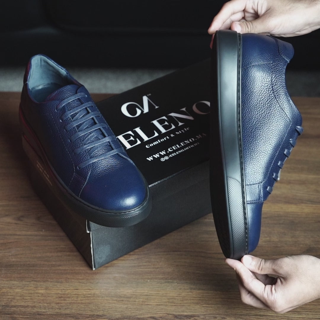 Alliez confort et style avec la Basket Blaze en Cuir Bleu Nuit avec semelle noire Conçue pour les amateurs de design épuré et de confort supérieur, elle associe élégance et praticité. Idéale pour le quotidien ou les occasions décontractées, cette basket combine modernité et confort inégalé, transformant chaque pas en une expérience agréable.