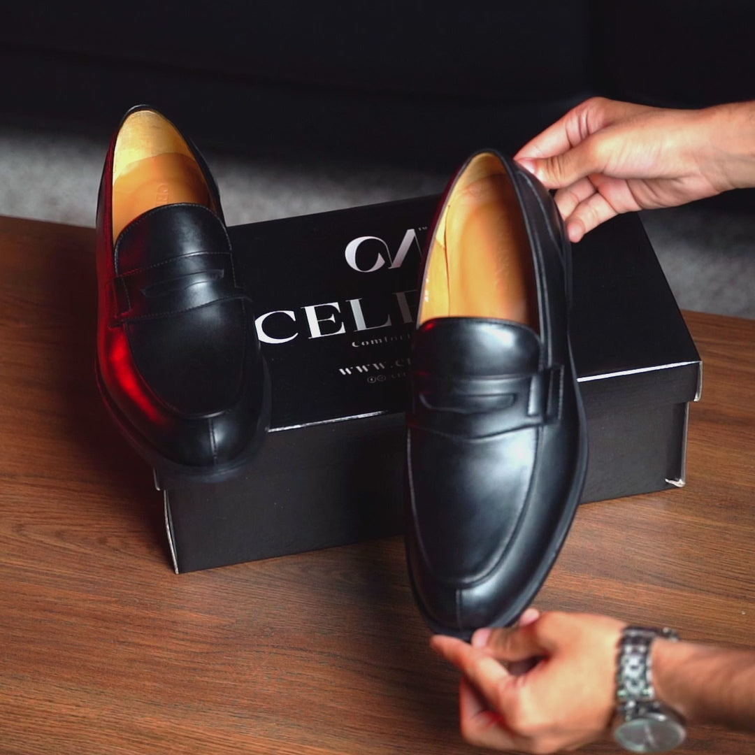 Découvrez les mocassins Taylor en cuir noir, alliant sophistication classique et confort inégalé :